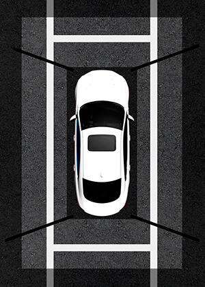 Изображение, пройдя через системный блок управления 360 Bird View, на мониторе складывается в единую картинку, что позволяет видеть все, что происходит вокруг транспортного средства с высоты птичьего полёта.